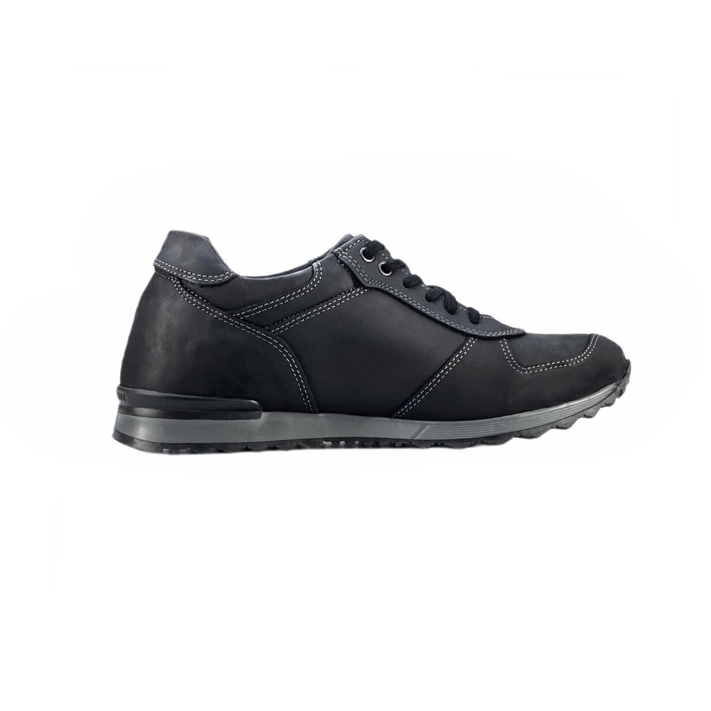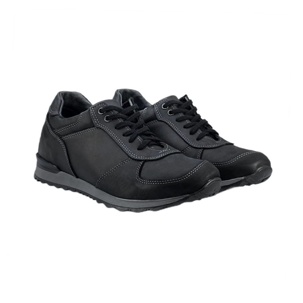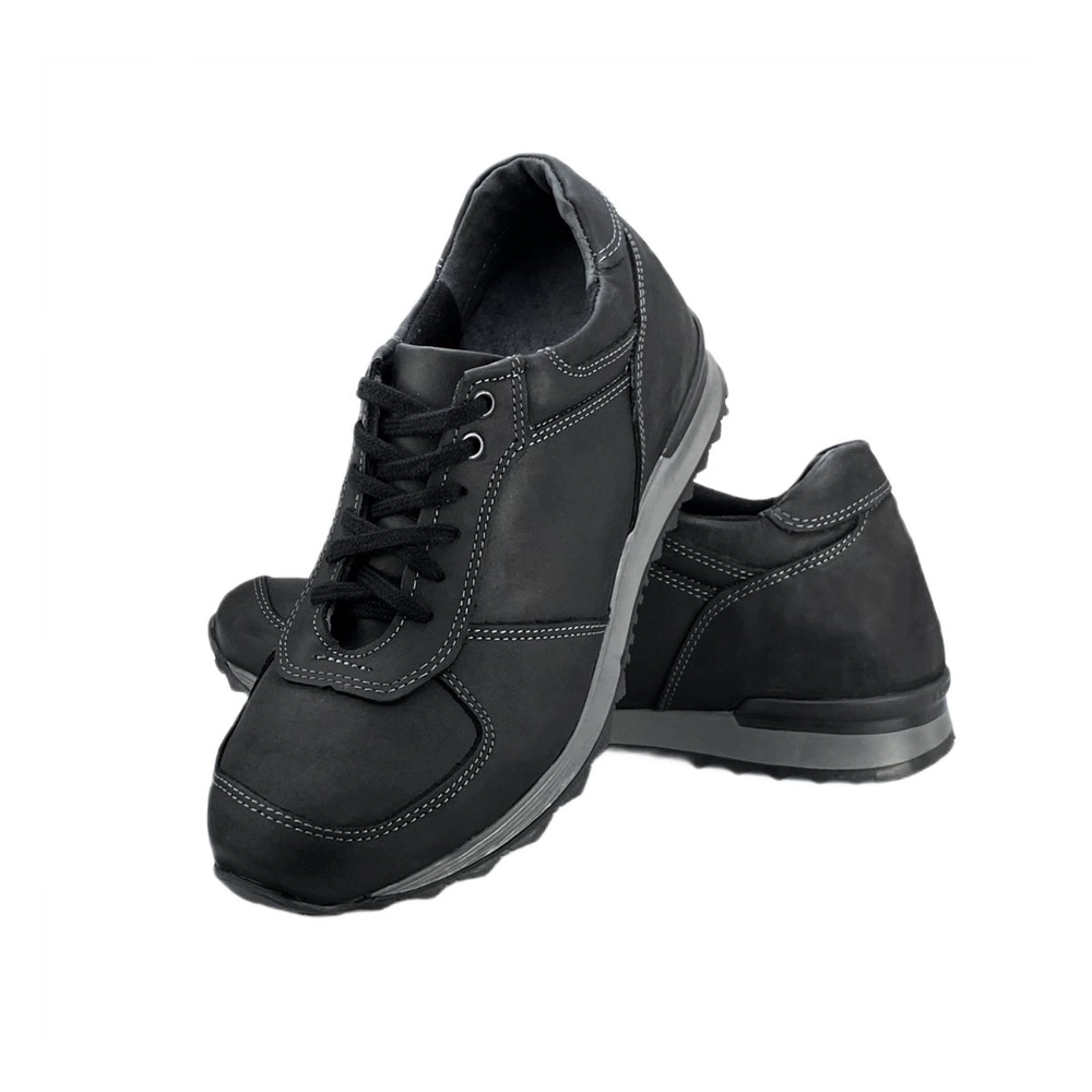 • Buty sportowe wykonane z naturalnej skóry licowej crazy horse w kolorze czarnym.