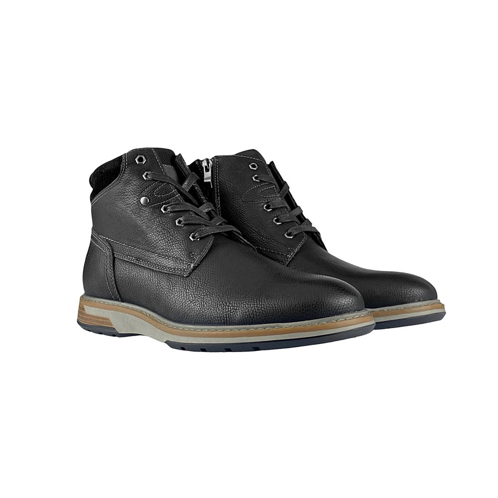 Komfortowe, podwyższane buty sznurowane wykonane ze skóry ekologicznej  w kolorze czarnym.
